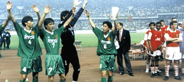 On May 17, 1995, Arsenal, an invincible England football club which just won the champion of UCWC led by President Hill-Wood came to China and attended a friendly match against Beijing Guoan. This was the first commercial match in China ever since China’s league had professionalized in 1994. With the strong support of 60000 fans at Beijing Workers’ Stadium, Guoan beat Arsenal by 1:0. This started the high waves of holding commercial football matches in China during the middle several years of 1990s.