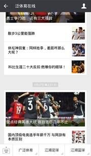 通过关注“泛体育在线”,用户将每日收取与体育有关的图文和视频资讯,了解最新运动健身信息和体坛新闻动态,同时,订阅号提供菜单服务,满足用户多种信息浏览与阅读需求。