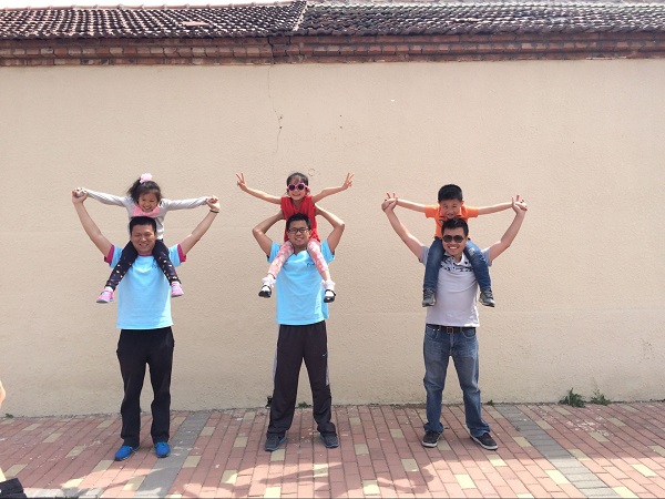 三位“奶爸”统一的姿势,绝对是春游当天最美的动作。