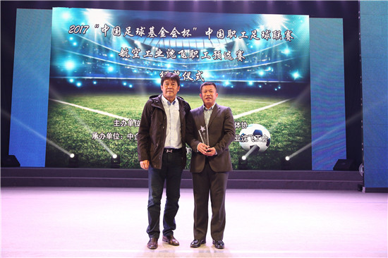 2017年10月27日,中国职工足球协会主席迟尚斌、中国企业体育协会副秘书长田超一行来到中国航空工业集团公司沈阳飞机工业(集团)公司,参加沈飞俱乐部足球联赛暨2017“中国足球基金会杯”中国职工足球联赛航空系统预赛的颁奖庆典,为刚刚成立的沈飞足球俱乐部站脚助威。