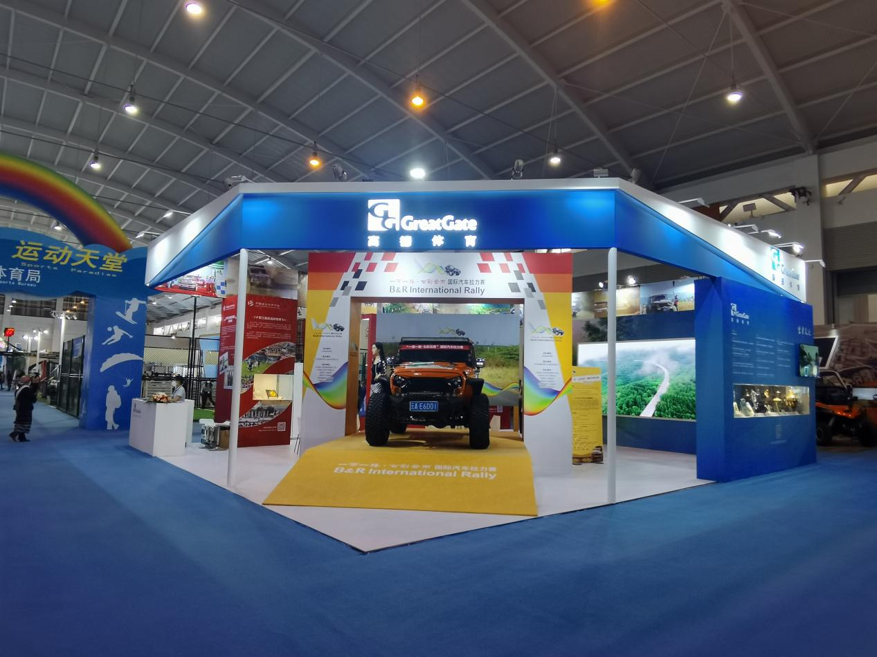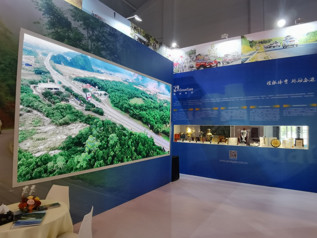 一个彩色发车门、一辆炫酷越野车,再现了由B体育与云南省政府共同创办的 “一带一路﹒七彩云南”国际汽车拉力赛的发车场景,使本就在门口位置的展位格外引人注目。